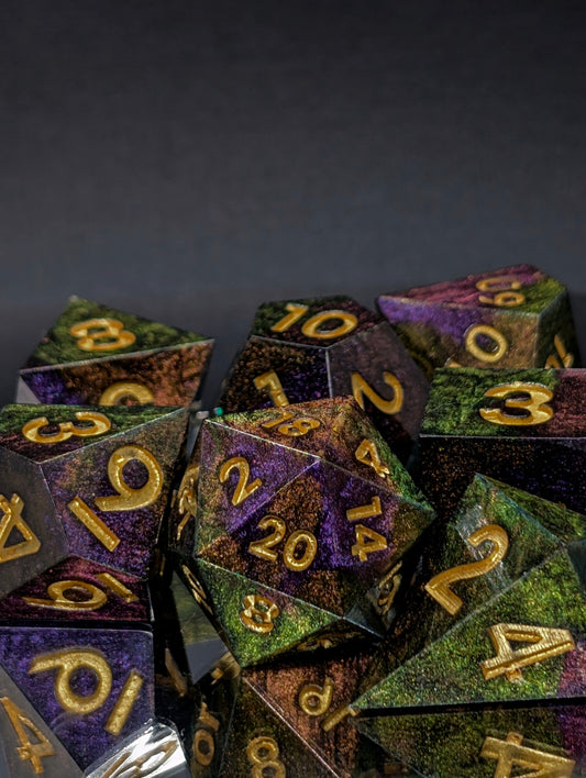 De nuestra imaginación a tu mesa, cada set es hecho a mano, vertido, pulido y diseñado para inspirar tu próxima tirada. Encuentra tu set para tu personaje o juego y deja que tu historia brille con cada dado. 🎲✨