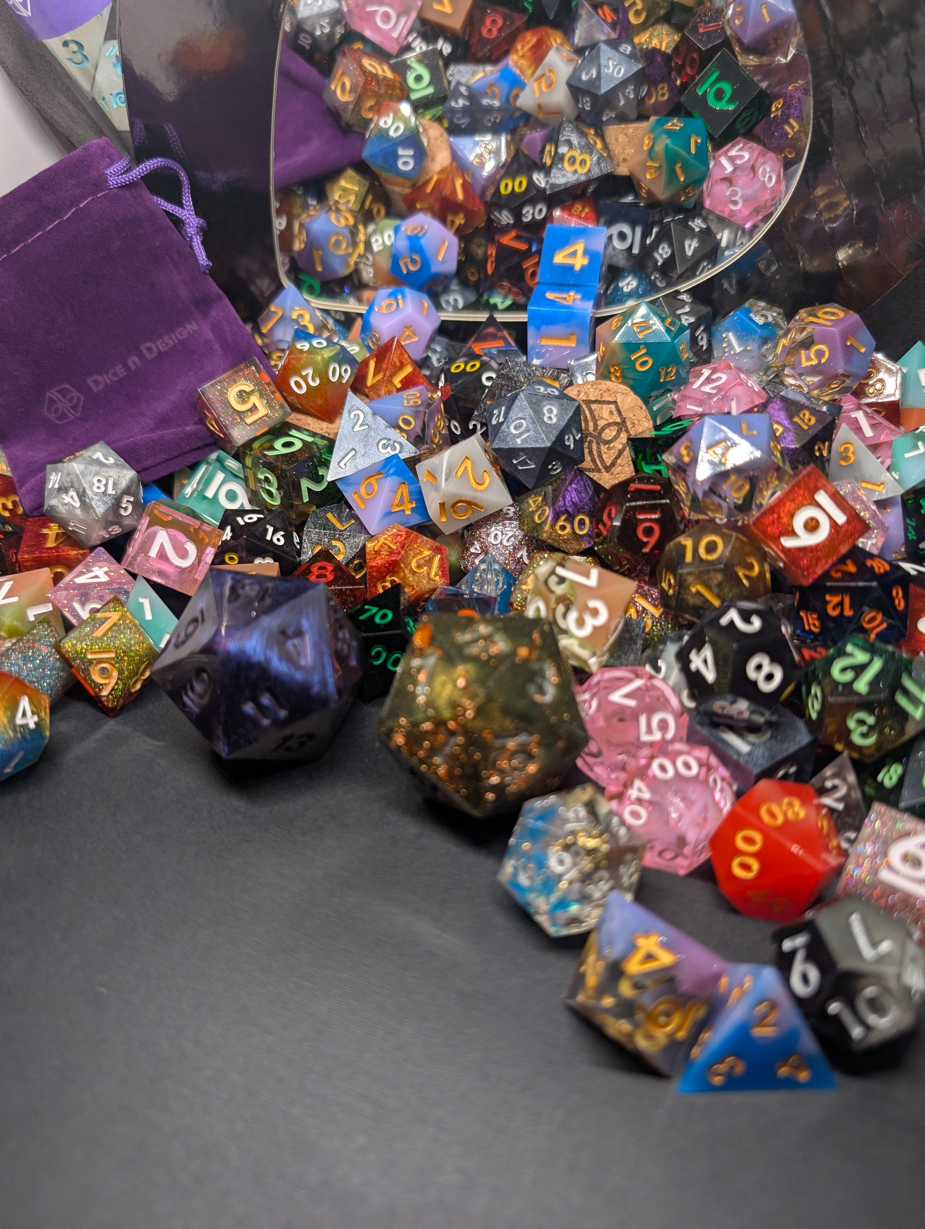 Escoge tu propio set de dados con una variedad de opciones de color, efectos y diseños, destaca en tu noche de juegos con tu propio set de dados personalizado.