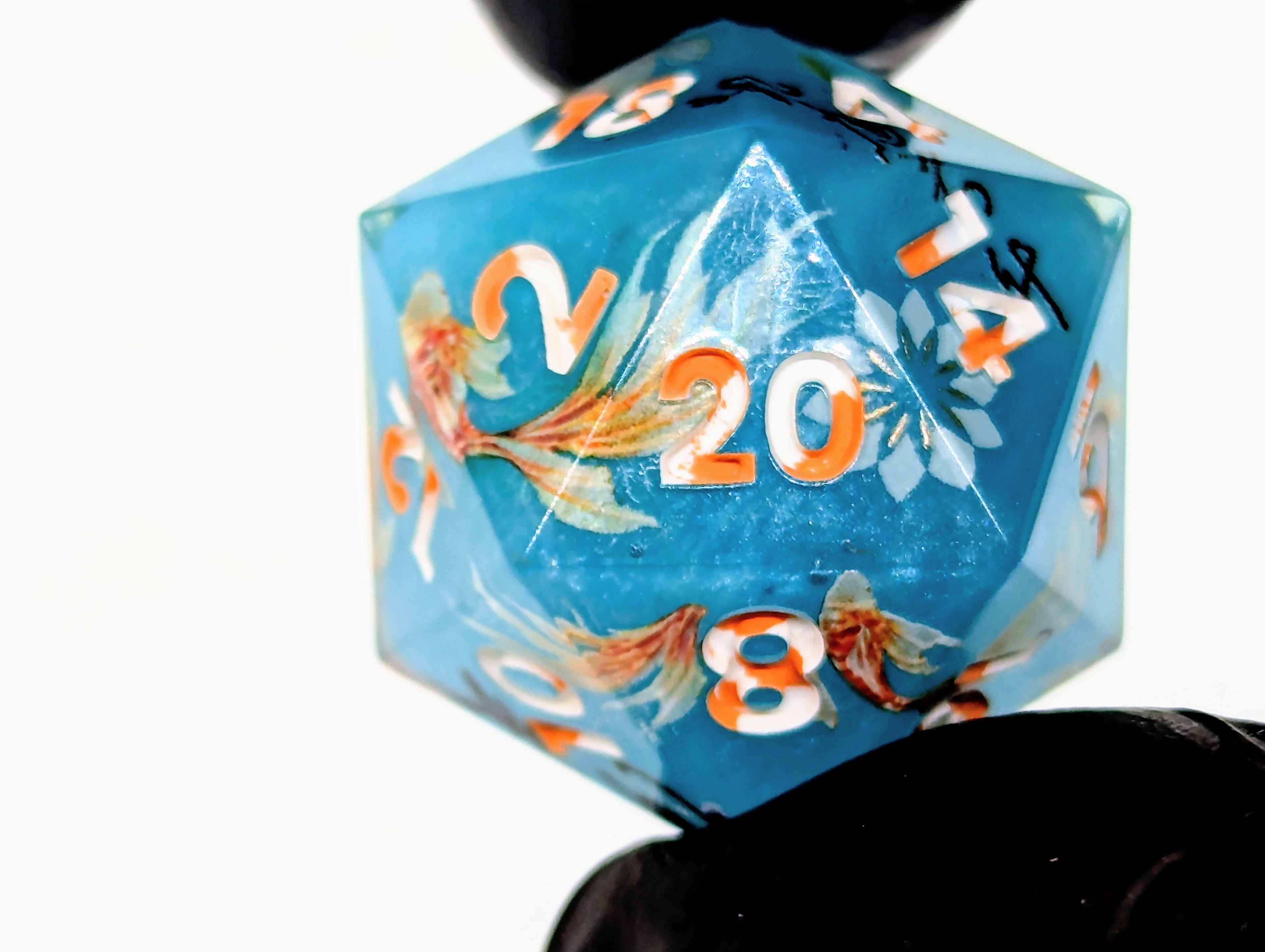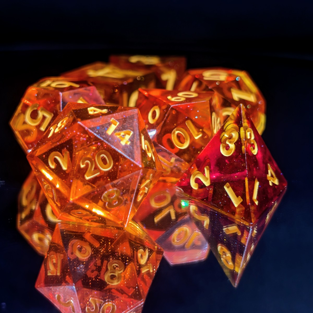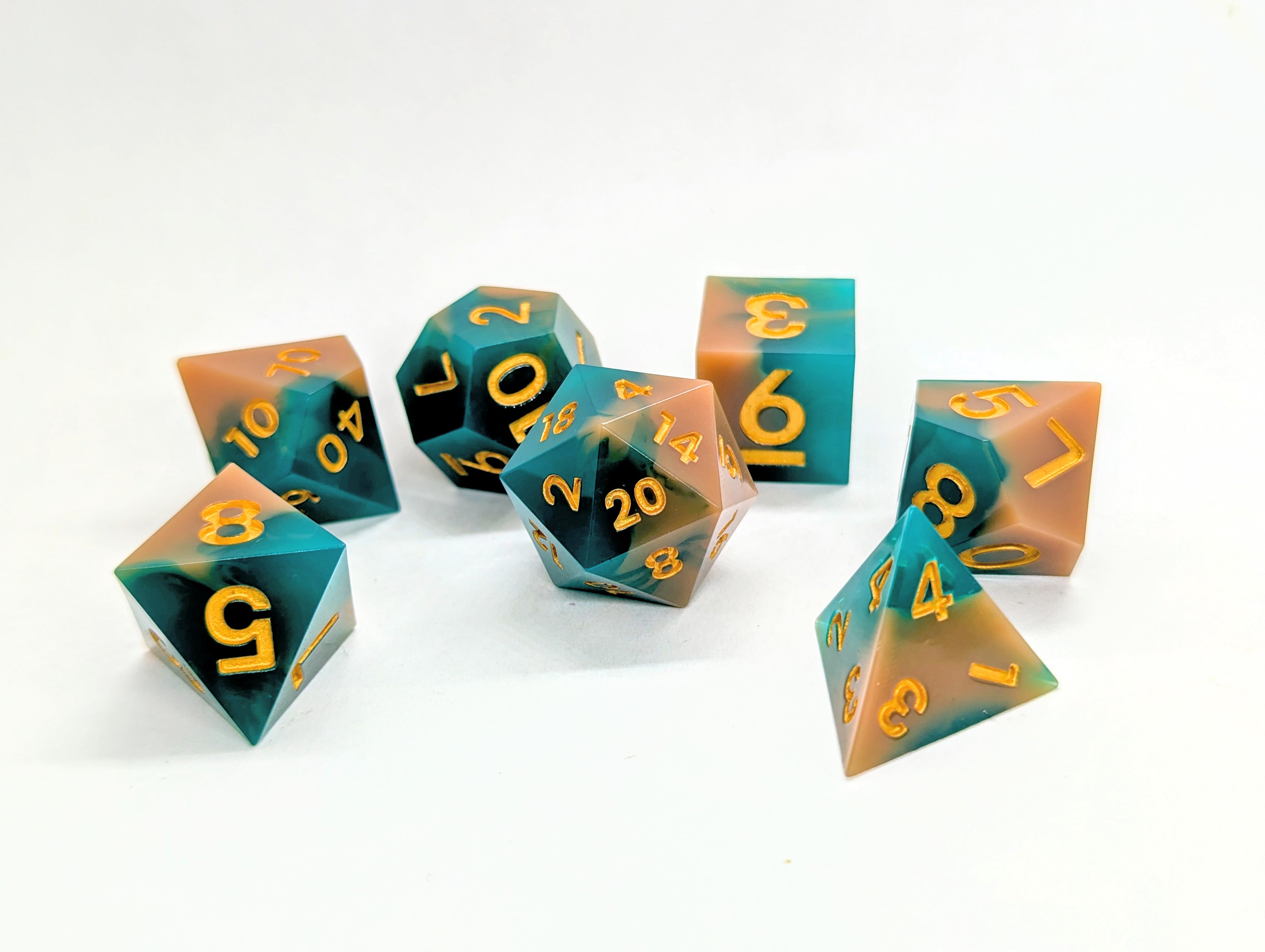 Dados diseñados, vertidos y pintados a mano por nosotros, listos para comprar y usar.