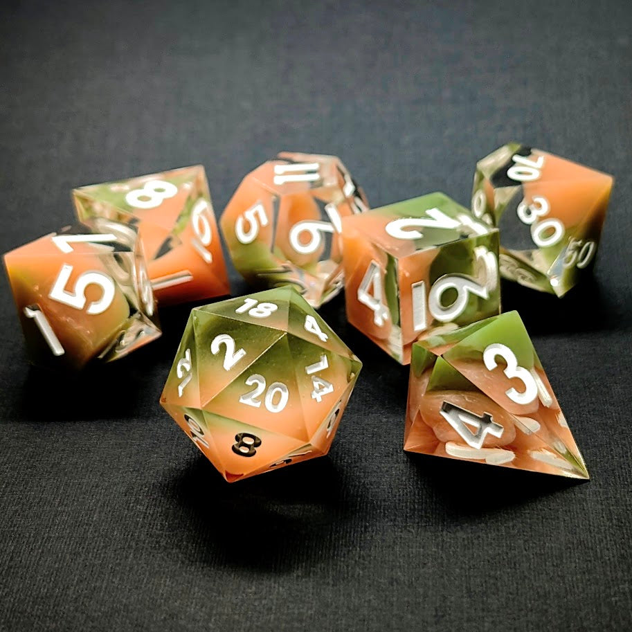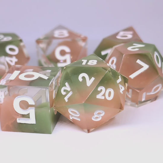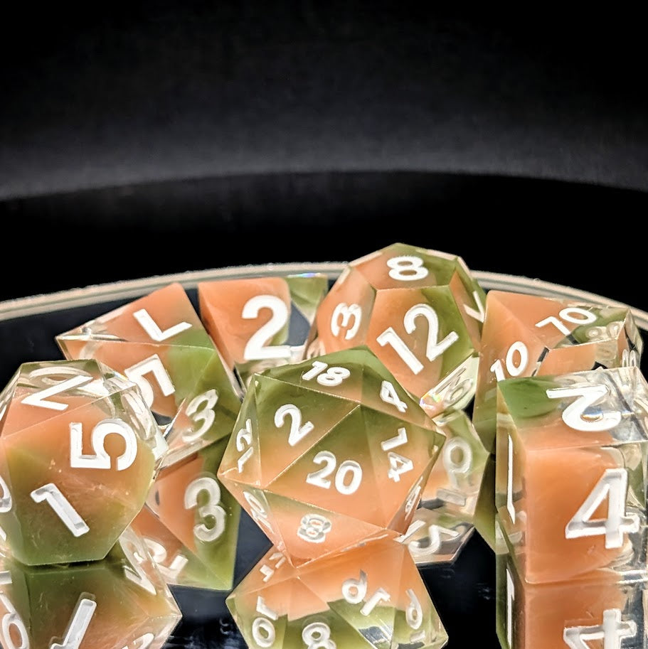Cada set está vertido y pintado a mano, por lo que cada dado es único. Elige el tuyo!