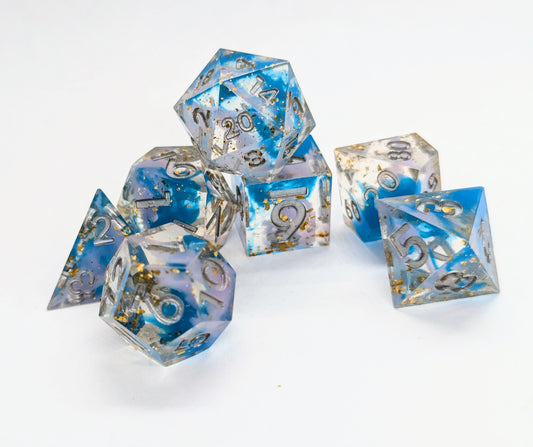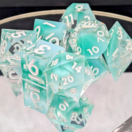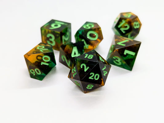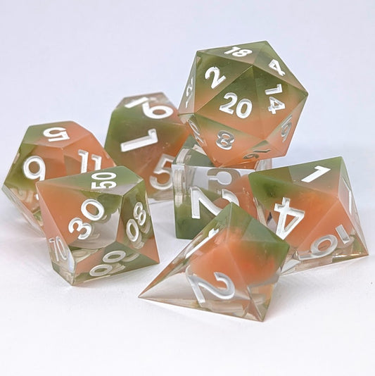 Dados diseñados, vertidos y pintados a mano por nosotros, listos para comprar y usar.