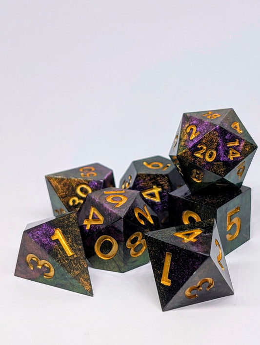 Cada set es artesanal, con diseños originales y acabados únicos, pensado para que elijas el que conecte contigo o tu personaje. Ya sea para tu próxima campaña de D&D, una noche de juegos de rol o tu primera gran aventura.